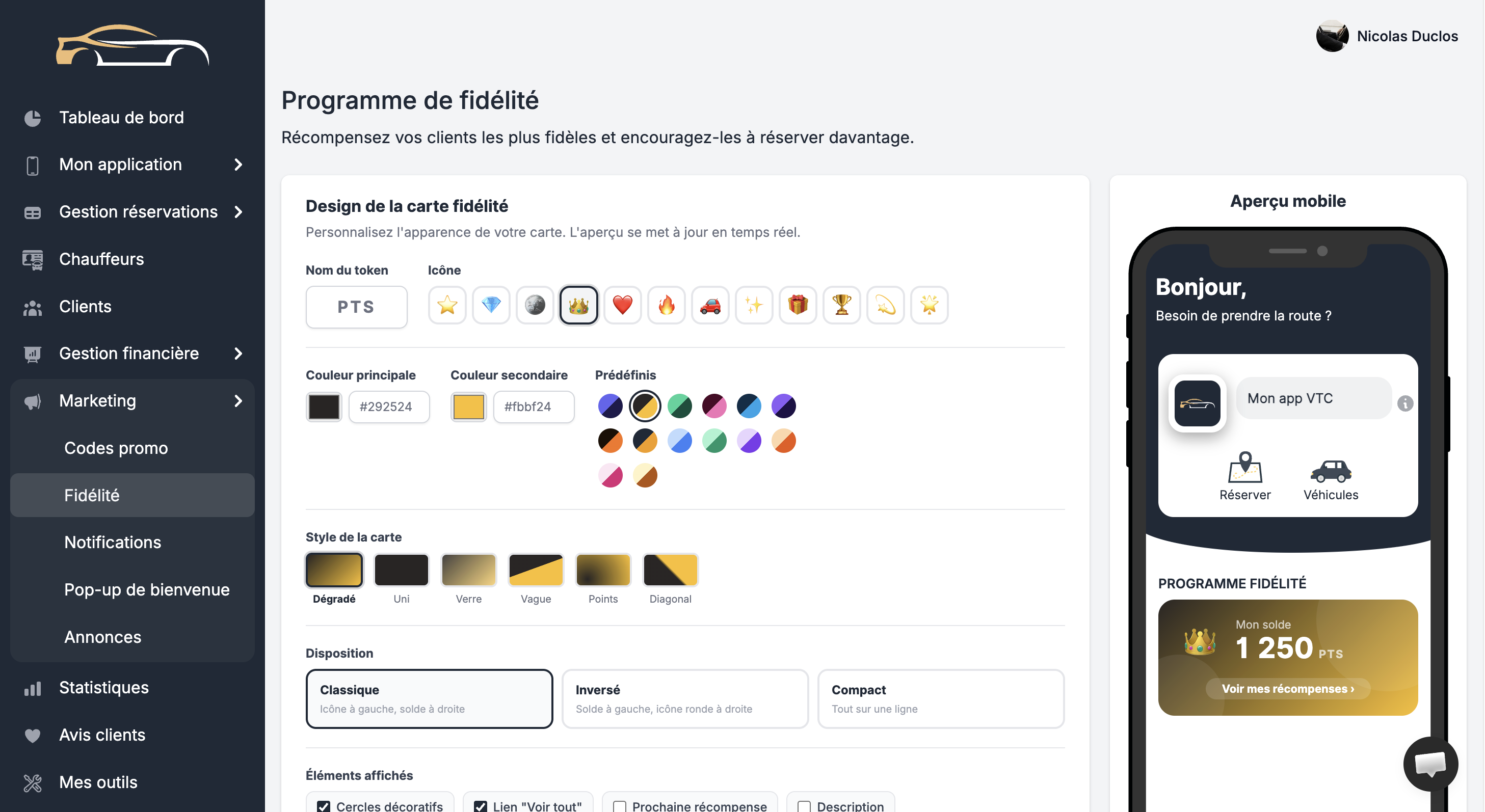 Gérez la personnalisation de votre application mobile ainsi que l’intégralité de votre activité VTC.